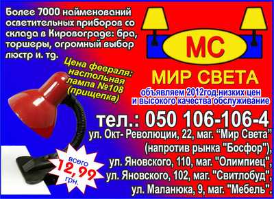 Сеть магазинов –МС- предлагает огромнейший выбор осветительных приборов