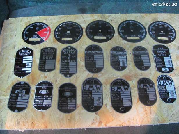 шильдики и шкалы спидометров на ретромотоциклы БМВ,м72,иж49,иж350,симсон.возможно изготовление под заказ по вашему макету. |