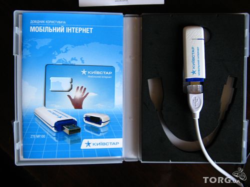 В коробке находится модем, шнур USB (модем "пухлый" и удлинитель USB здесь очень кстати), инструкцию на украинском языке и новый стартовый пакет "Киевстар".Модель zte mf100 |