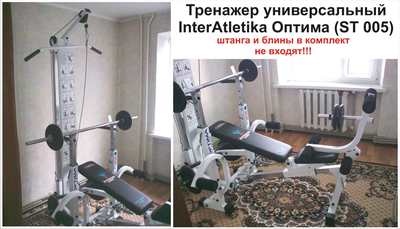 Комплексный тренажер Inter Atlеtik Оптима СТ 005 Позволяет выполнять более 30-ти упражнений на основные группы мышц. Верхний и нижний блоки. Компактен в собранном виде. Нагрузки до 150кг. Б/у, в отличном состоянии, немного использовался для тренировки в домашних условиях. Цена в интернет магазинах около 6600грн и плюс доставка в Кировоград. Моя цена будет значительно дешевле. Если есть вопросы, звоните, отвечу с удовольствием!!! |