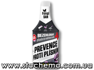 FungiSAN бесхлорный – это противоплесневая, антибактериальная и алгицидная (против зеленых водорослей на поверхностях) жидкая добавка, добавляется к водорастворимым малярных краскам и кровельным материалам, минеральным строительным материалам. Может применяться в жилых и нежилых помещениях, заведениях питания, помещениях промышленного и общественного назначения в интерьере и экстерьере. Средство эффективно и в местах с экстремальными условиями (например кухни, прачечные, бани и других). Товар производится в Чехии, разрешено для использования в Украине, о чем есть соответствующие документы. Официальный представитель чешского производителя, без посредников. Расход: Из 1 кг концентрата можно обработать 50 - 100 кв.м поверхности, в зависимости от расхода материала, которым проводится покрытия (работа). Поставляется в таре по 0,5 л. Доставка товара осуществляется по всей территории Украины службой экспресс-доставки Новая Почта, оплата - при получении товара.