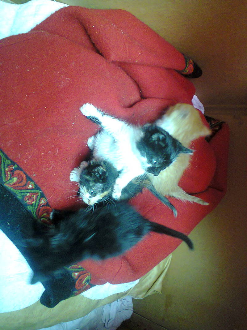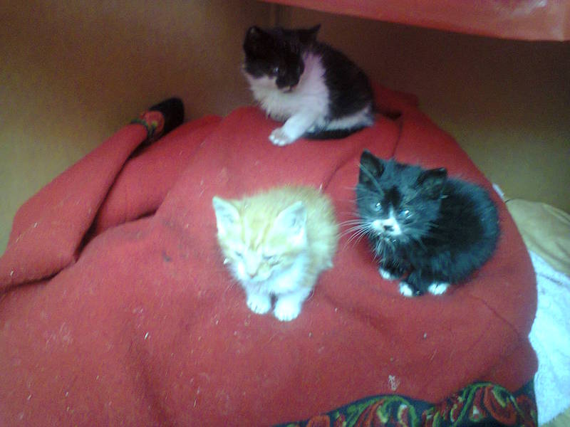 Трое очаровательных кошечек ищут хозяев! Кошка привела месяц назад возле госучреждения, и работницы не могли позволить крошкам умереть. К себе забрать возможности нет, а ведь скоро уже зима! Котята очень аккуратные: даже находясь на улице, в туалет специально отвели отдельное место :) Трехмастная обязательно приведет счастье в ваш дом, а двое черно-беленьких подарят огромную любовь добрым хозяевам! C вопросами обращаться по телефонам: (099)962-10-57 Светлана; (066)368-19-25 Ира. |