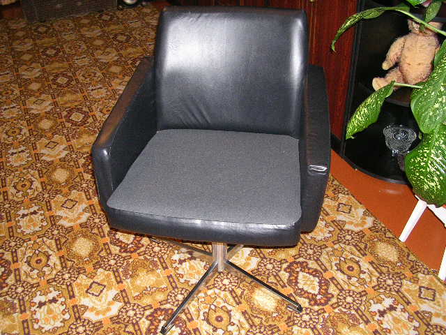 Кресло вращающееся.Сделано в Германии. Материал кожзам, сидение - ткань, ножка никелированная. |