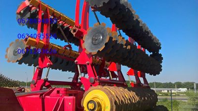 рабочая ширина 11,94 м. рабочая ширина катков 12,25 м. оснащен 610-миллиметровыми дисками. Глубина обработки от 5 до 15 см.